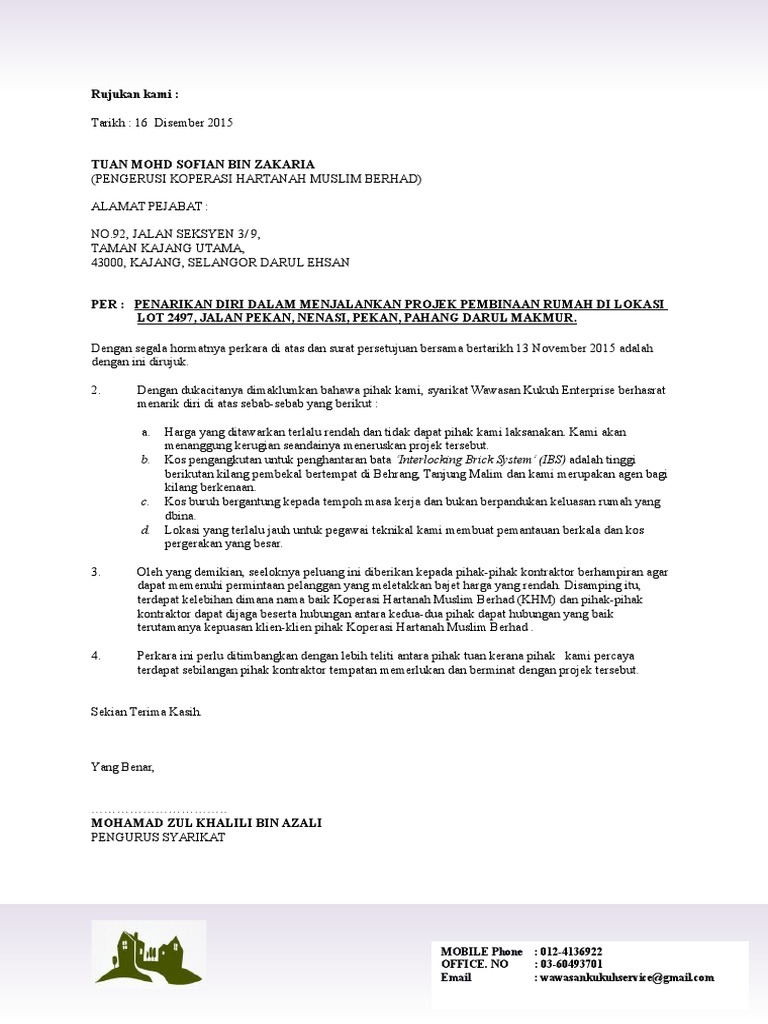 Contoh Surat Penarikan Diri Dari Tender