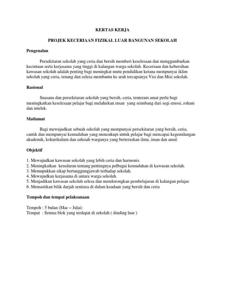 Kertas kerja projek tanda nama sekolah dan program keceriaan sekolah oleh. Kertas kerja program keceriaan pusat sumber sekolah Created Date. Sekolah merupakan institusi pendidikan yang dapat.